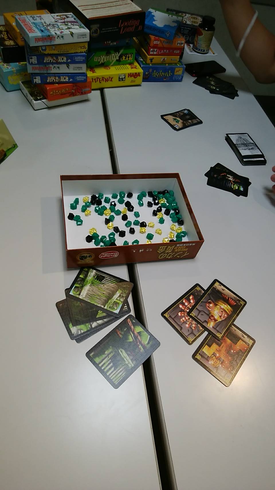 「ゾンババ」「ニムト」「インカの黄金」「エリクシール」「ゆかいなふくろ」をプレイしました。どれもカードを置くだけだったり、2つの選択肢から1つ選ぶだけだったり誰でも楽しめる内容となっております。
