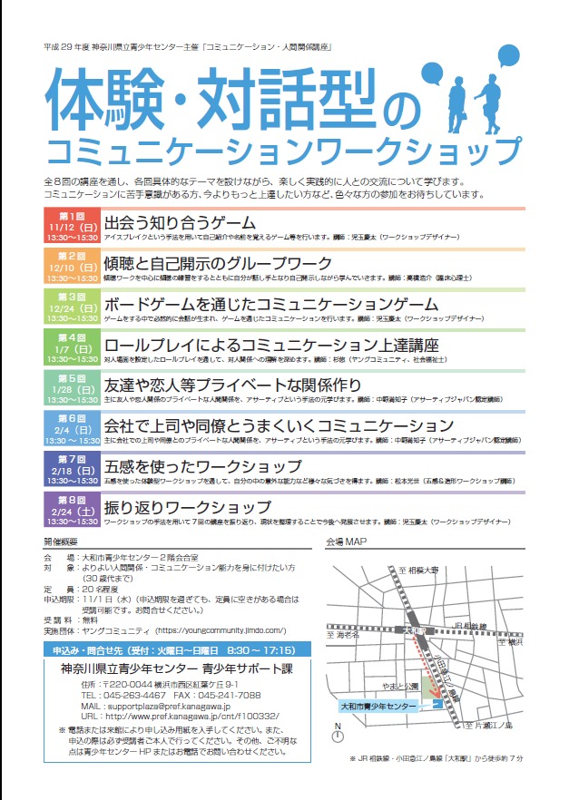 今年度も表記の講座を神奈川県の青少年センターから委託を受けて実施する運びとなりました。