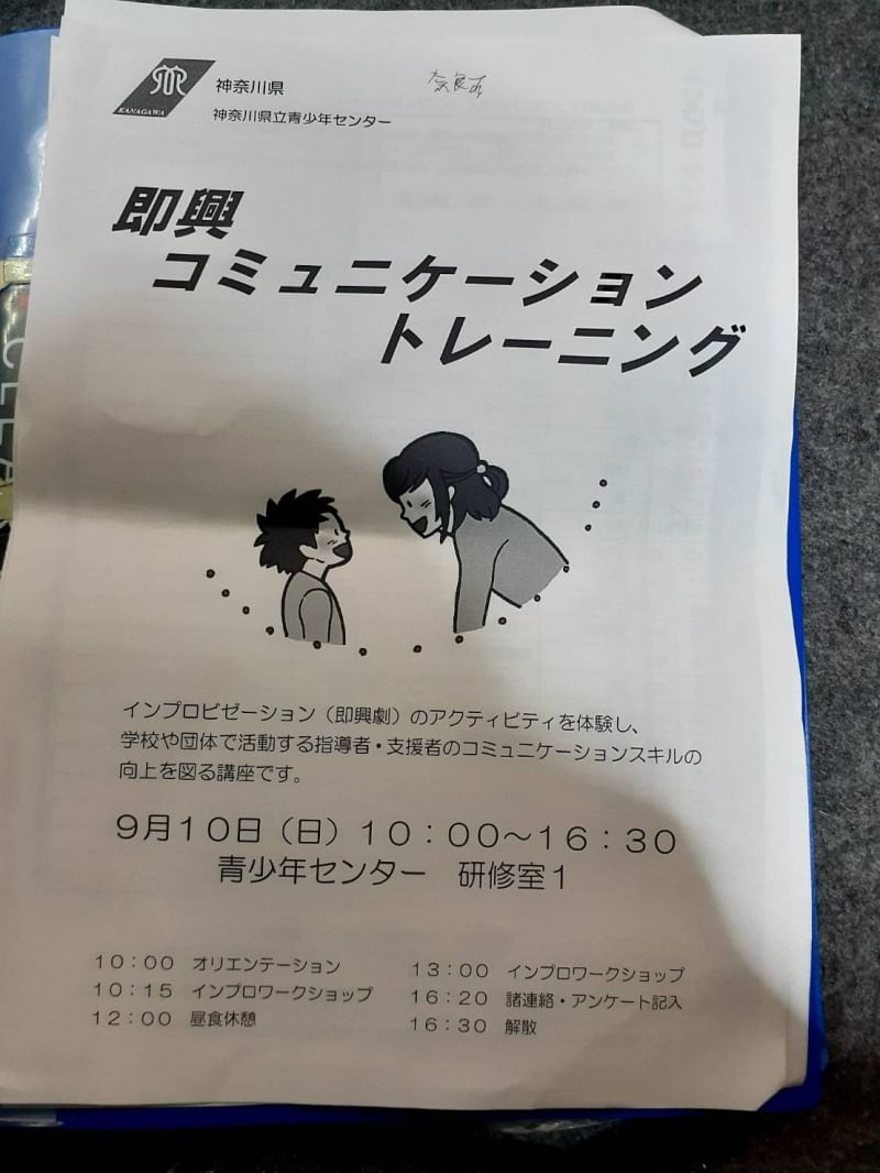 本日は神奈川県立青少年センター指導者育成課主催の『即興コミュニケーショントレーニング』という講座に参加して来ました⭐